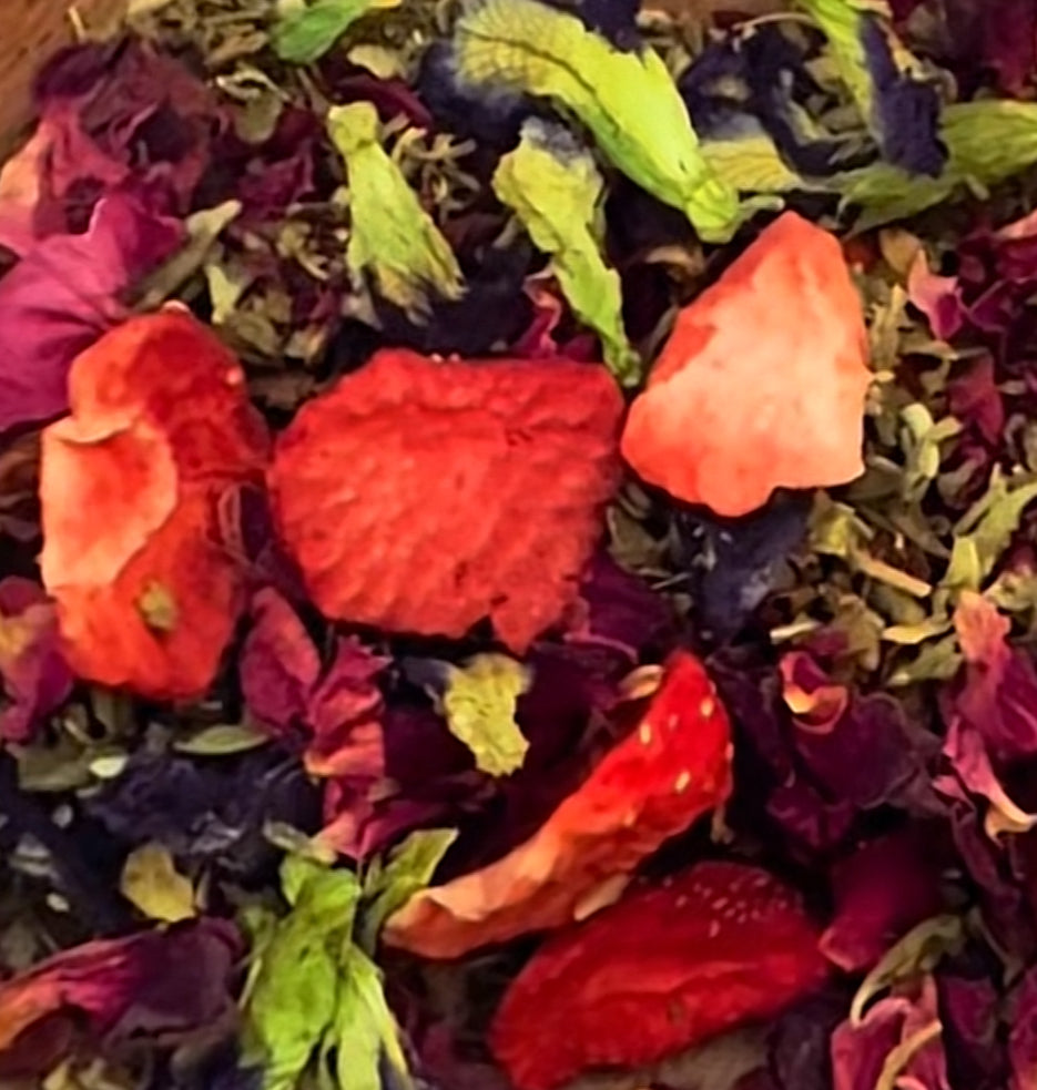 - Butterfly Pea Flower – Rich in antioxidants and known for supporting skin health, memory, and a calm mood.